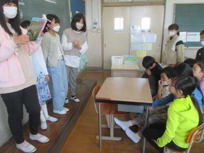 係活動が始まってから約1か月が経ちました。どの係も様々な活動を考えて積極的に活動に取り組んでいます。生き物係はメダカの世話を頑張ったり、新聞を書いたりしています。遊び係は、定期的にみんなが楽しむことができる「みんな遊び」を企画・実行しています。そして、チェック係は毎日の宿題チェックやハンカチチェックに取り組んでいます。本係は、毎週火曜日の中間休みにみんなへ本の読み聞かせを行ったりしおり作りを行ったりしてくれています。写真は、今日の読み聞かせの様子です。自分の役割に責任をもって取り組む姿は見ていてとても気持ちが良いです。