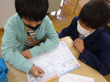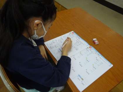 わり算や体積の学習をして、練習問題に取り組んでいます。