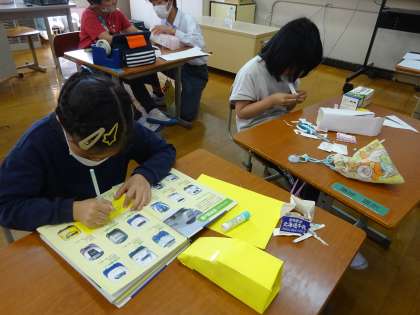 図鑑やタブレットを見ながら、車両の形や模様を観察していました。