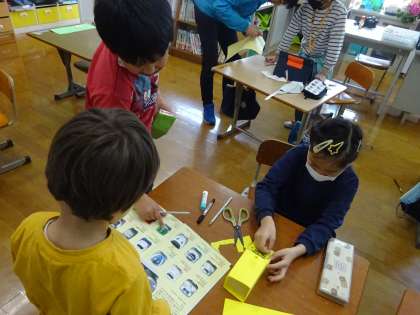 好きな電車や新幹線を選んで、色画用紙を貼ったり、窓を描いたりしました。