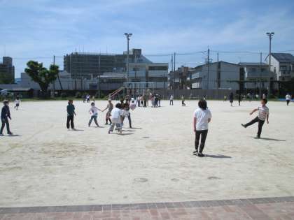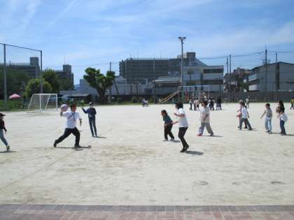 ロング昼休みではクラスのみんなでドッチボールをしました。
