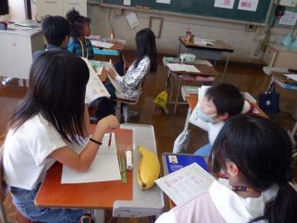上の3つの式に合う図はどれなのか考えました。自分の考えを友達に伝えています。ノートや表情を見て話す姿がすばらしいです。