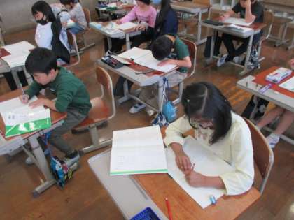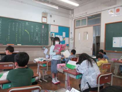 国語科では「いなばの白うさぎ」の学習をしました。昔話を聞いて、登場人物やあらすじを確かめたり、自分のお気に入りの場面を理由と共に発表したりしました。