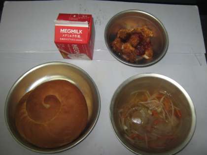 今日の給食は,バターうずまきパン・牛乳・チキンカツ・スープでした。久しぶりのチキンカツで子どもたちは,大喜びでした。手作りソースも好評できれいに食べていました。スープもチキンスープの味がよくきいていておいしかったです。