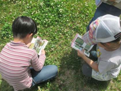 見つけた花の名前を一生懸命図鑑を使って探していました。