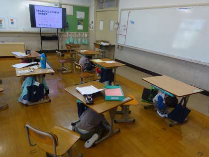 木曜日の避難訓練に向けて、教室で学習をしました。
