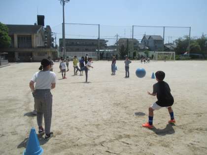 今日は、みんな遊びでドッジボールをしました。夏かと思うような暑い日でしたが、子どもたちはみんなでドッジボールを楽しんでいました。熱中症に気を付けながらこれからもみんなで外遊びを楽しんでいってほしいです。