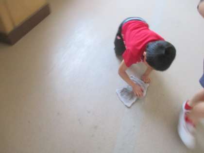 そうじの時間に、ぞうきんが黒くなるまで床掃除を頑張ってくれる人やピカピカになるようにほうきで掃いたり、ぞうきんで拭いたりしてくれる人が増えています。とても嬉しいです。そうじ名人になれそうですね!