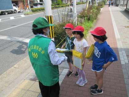 下鴨警察署の方に教えていただいた「右、左、後ろ」の確認から、手を挙げて合図をし、もう一度「右、左、後ろ」を確認するやり方をみんな徹底してやっていました。2年生さすがですね。