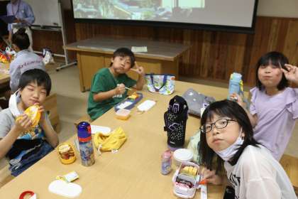 「さすてな」に到着してまずはおいしいお弁当を食べました。給食ももりもり食べる4年生の子どもたちですが、お弁当はさらにもりもり食べていました。お弁当に入っているおかずを見せ合いながら食べたり、ひたすら味わって食べていたり…元気をチャージすることができました。お弁当のご準備ありがとうございました。