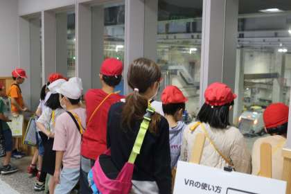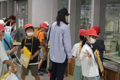 早速見学スタートです。集められたごみが扉の向こうへ落とされていきます。ごみを車に積む様子はよく見ますが、降ろされるところを見る機会はほとんどないことでしょう。子どもたちはごみが落ちていく様子を食い入るように見つめていました。すごい量のごみです。