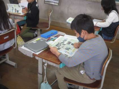 今日は、前回色をぬったマップをもとに京都市には、どのような場所があるのかということを考えたり、教科書の資料をもとに調べたりして、寺社仏閣がとても多い事や文化施設に恵まれていることなど京都市の町の様子について知ることができました。
