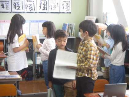 「こまを楽しむ」の学習もいよいよまとめに入ってきています。筆者の安藤さんが文章に凝らした工夫をもとに、自分たちもその工夫を取り入れながら頑張って説明していました。