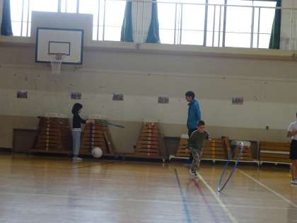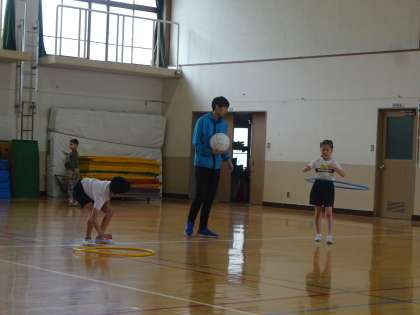 いつまでも回し続ける人、遠くまで転がす人、転がしたフープにくぐる人、なわとびのように跳ぶ人、いろいろな楽しみ方がありましたね。