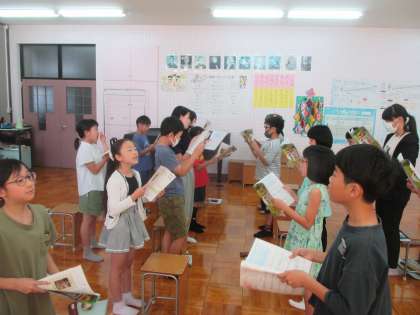 音楽の授業で歌の練習をしたり、リコーダーの練習をしたりしています。歌の練習では、声の強弱や歌いだしを意識したり、のびやかに歌うことを意識したりしながら歌いました。元気よく歌うところは元気よく、のびやかに歌うところはのびやかに美しく歌うことができていて、とても美しい歌声を響かせていました。