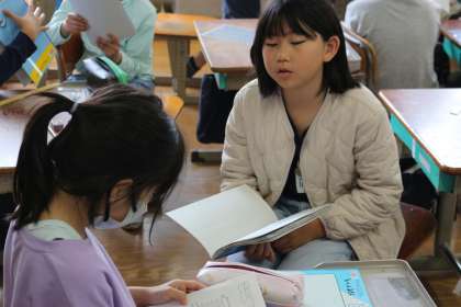折れ線グラフの学習ももう終わります。読み方、かき方と学んできた子どもたちですが、今回はグラフを読み取った後に、そのグラフをつかった問題作りをしました。自分の作った問題を友だちに出すために、子どもたちは一生懸命問題を考えていました。友だちと問題に答え合う中で、「ここはこうした方がいいと思うよ」とアドバイスも聞こえ出し、とても良い学びができていました。