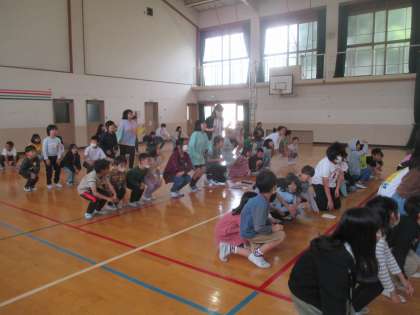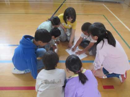 今日は、今年度初めての「ようせいタイム」がありました。1年生から6年生までの縦割りグループで顔合わせを行いました。5年生は高学年として、下級生に優しく声をかけるなど6年生と共にしっかりとグループをリードし、まとめていました。