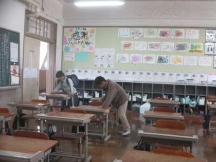 教室で片づけをしていた先生はとても嬉しかったです。それは、あるお友だちのおかげで、来週も気持ちよく学校生活をスタートすることができるからです。みんな帰った教室で、残っていた2人が、出っ放しになっていた椅子を直したり、机の位置を整えたりして、教室中の机といすがぴしーっとそろっていました。本当にありがとう。おかげさまできれいな教室が保てています。