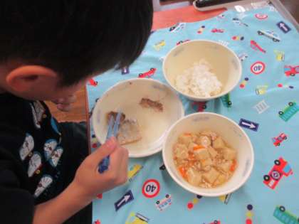栄養教諭の先生に魚の上手な食べ方を教えていただき、今日の給食で早速実践してみました。魚の骨を上手にとることができる子が多く、「先生とれました!」と嬉しそうに伝えてくれました。「おさかなめいじん」の誕生です!残菜もゼロですばらしかったです!