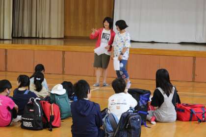 出発式。子どもたちは、自分からというテーマのもと、2日間がんばります。