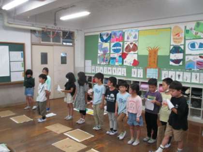2年生は6月のにこにこ集会で、全学年の中でトップバッターとして発表をします。その発表が、実はもう来週に迫っています。2年生は、音楽の学習で「うたでみんなとつながれる曲」を学習してきました。にこにこ集会では、この曲を通してみんなと一緒に歌う発表を考えています。ほかの学年にも楽しんでもらえるよう精一杯頑張ります。