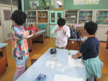人は、空気を吸ったり吐いたりするとき、何を取り入れ、何を出しているのかを調べるために、気体検知管を使って実験をしました。吸う空気と吐いた空気を袋に集め、酸素や二酸化炭素の体積の割合を調べました。結果、人は、呼吸によって酸素の一部を取り入れ、二酸化炭素を出していることを数値ではっきりと知ることができました。