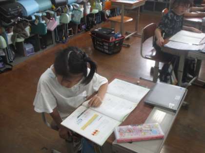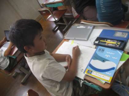 今日の算数は、単元の合間にこれまでの学習をふり返る復習の時間でした。3年生の4・5月の学習だけでなく、2年生の時の内容もあり、盛沢山でしたが、自分で教科書、ドリル、ミライシードの中から方法を選択し、課題に取り組んでいました。