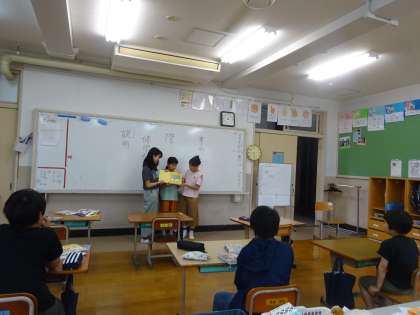 朝読書の時間に、図書委員の人たちが読み聞かせに来てくれました。