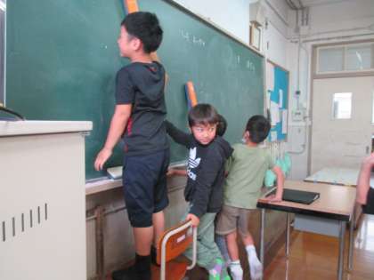 教室の黒板をきれいにするのは日直さんの仕事です。が、日直の2人でやるよりもみんなでやった方が黒板は速く、よりきれいになります。今日も、日直さん以外の人が率先して黒板消しを手伝ってくれていました。「友だちを大事にする」の学級目標の下、みんなで助け合う姿がとても素敵です。