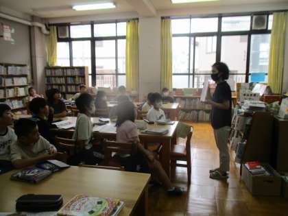 「一つの花」の導入で戦争に関する本の紹介を図書館司書の澤田先生にしていただきました。みんな戦争のお話に興味をもっている様子でした。「一つの花」の学習を進めていきますが、様々な本に興味をもち並行読書ができるといいです。