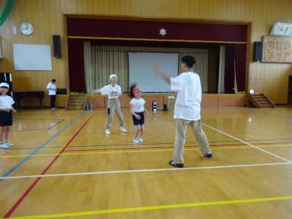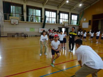ダブルダッチチームの人が講師として来てくださって、4・5・6年のみなさんでチャレンジをしました。