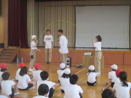 今日は、5・6時間目にダブルダッチの体験授業がありました。プロのダブルダッチチームの方が楽しく丁寧に教えてくださり、子どもたちはとても楽しそうに体験学習に取り組んでいました。今日の体験学習をきっかけに、新しい世界観が開けた子どもたちもいるかもしれません。とても良い体験をさせていただきました。