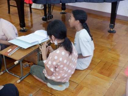 音楽の時間、リコーダーの練習をしました。もくもくと練習する姿や友達にアドバイスする姿が見られました。どちらも学習に自ら向かうすばらしい姿だなと感じました。