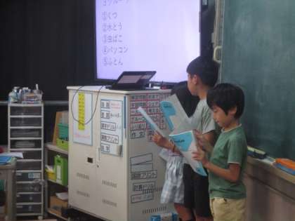 今日は、単元の最終で各グループのとっておきの5つのアイテムの発表会をしました。土曜参観の日から始まって、ここまで、意見を広げたり、まとめたりする目的で話し合いを重ね、最終的にグループで決定したアイテムを紹介しました。他グループとの比較などをすることで、共通点や相違点を見つけることができました。生活に必要な物、生活を快適にする物、山ならではの物などいろいろな視点でアイテムを決めていて考え方の違いやそれぞれの良さに気づくことができました。