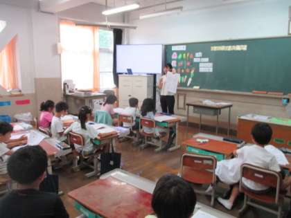3時間目、学活の授業は栄養教諭の先生に野菜のことについて教えていただきました。野菜には「しゅん」があり、しゅんの野菜を食べると、目がよくなったり、肌がキレイになったり、色々ないいことがあることを知りました。