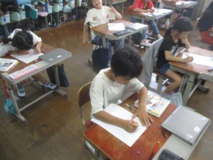 今年も昨年に引き続きちょうちんづくりができることになりました。子どもたちもとても喜んでいて、今日はアイデアスケッチを行いました。テーマを決めて、イメージマップを広げ、昨年のことを思い出しながらどのようなちょうちんにしようか一生懸命考えて紙に描いていました。今年も出来上がった作品を展示していただけるようで、やる気満々の子どもたちです。