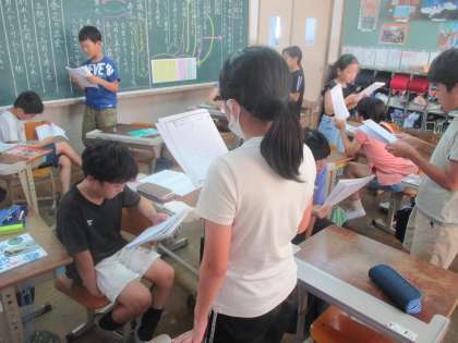今日は、「読み上げ計算」でした。ランダムに並べられたかけ算の6の段を、1分間でどれだけ正確にスピーディーに読み上げることができるのか…スタートの合図とともに子どもたちの声が一斉に鳴り響きました。