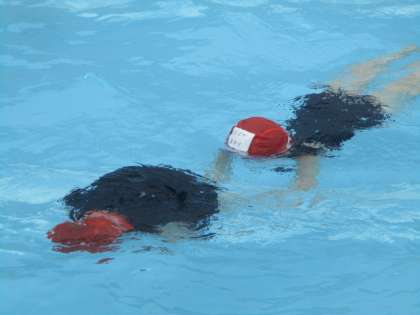 今日は「浮く遊び」にチャレンジしました。新しく学習した技は「だるま浮き」と「大文字浮き」です。苦手な子も顔に水をつけてチャレンジしたり、浮く遊びを使って新しい技を見つけたりと楽しむことができました。
