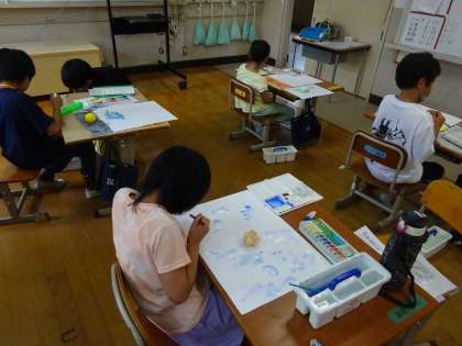 絵の具で背景を描いていきました。