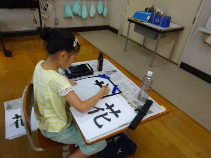 始筆と終筆に気をつけて、「花」という字を書きました。