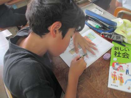社会科の学習で「米づくりのさかんな地域」の学習をしています。米づくりにかかる時間が60年前と比べて5分の1程度になっているのに生産量が多いのはどうしてなのか?生産性を高めるためにどのような工夫が行われているのかといったことを資料から読み取りました。
