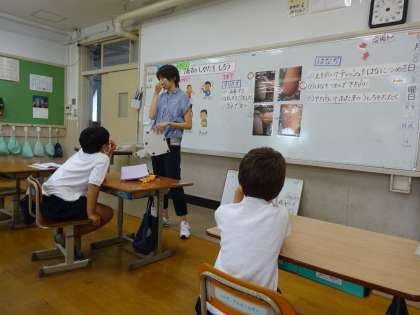 検査の前には、養護教諭の先生から「手当ての仕方」について教えてもらいました。