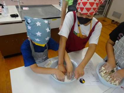 低学年チームは、団子を丸めたり、食器を拭いたりできましたね。