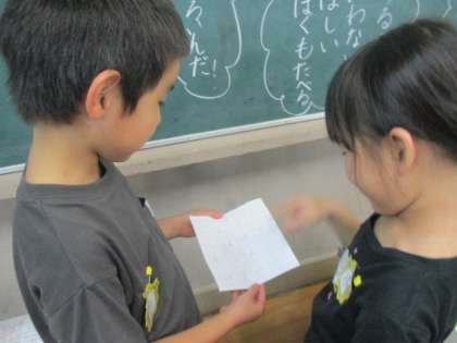 最後には、自分で作った言葉あそびのカードを友だちを見せ合いました。「もっとやりたい!」と大盛り上がりでした。