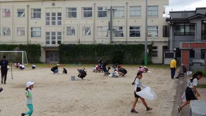 運動会を1週間後に控えた土曜日に、児童や教職員、保護者の方、地域の方、日頃運動場を使っておられる団体の方、総勢150名ほどの力を結集して、「養正クリーン作戦」を実施することができました。子どもたちが活動する部分を中心に、とにかく草を抜いていく地道な作業ですが、たくさんの力を合わせると、2時間で運動場はとてもスッキリ!
