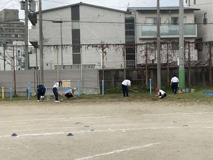 暑い中、数日にわたって作業をしてくださっています。運動場は日に日にきれいになっていきます。気持ちいい運動場で運動会ができると思うと、やる気がさらにアップしますね。
