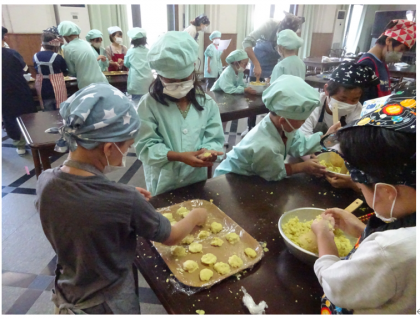 2年生と一緒に収穫したさつまいもを使って、さつまいももちを作りました。