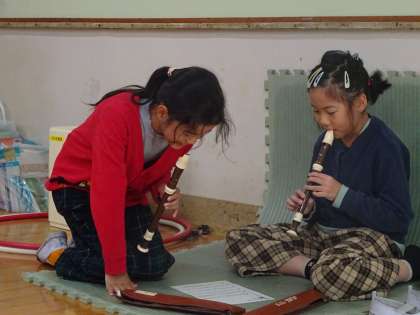 教室を覗くと、学習発表会に向けて、休み時間にリコーダーの練習をしていました。