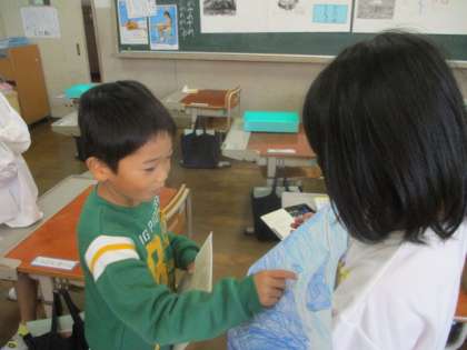 海や川辺にいる生き物の隠れ方について調べクイズを作りました。今日は作ったクイズを披露するクイズ大会!自分の調べていない生き物の隠れ方を知ることができて、子どもたちも楽しそうでした。