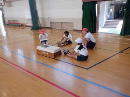 パワーアップ体操というオリジナルの体操を考えました。「だんだん運動の強度を上げたいな。」「全体をバランスよく伸ばしたいな。」など子どもたちなりに体力の課題と向き合いながら、体操のプログラムを組み立てました。この先も、楽しみながら運動して、体力を高めることに関心をもってほしいなと思います。